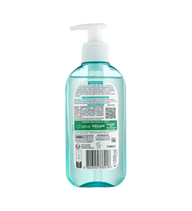 این ژل برای پاک کردن انواع مواد آرایشی از روی پوست صورت طراحی شده و برای انواع پوست ها مناسب است. این محصول با فرمولاسیونی موثر و با کیفیت به راحتی پوست شما را از انواع آلودگی ها، گرد و غبار و مواد آرایشی پاک می کند.اما این محصول تنها یک پاک کننده نیست! عصاره آلوئه ورا و هیالورونیک اسید بکار رفته در ترکیبات آن باعث می شود که پوستتان حین پاکسازی آبرسانی شود. از این رو همواره پوستی صاف و شفاف خواهید داشت. برند فرانسوی گارنیر به تولید و عرضه محصولات طبیعی و ارگانیک مشهور است.