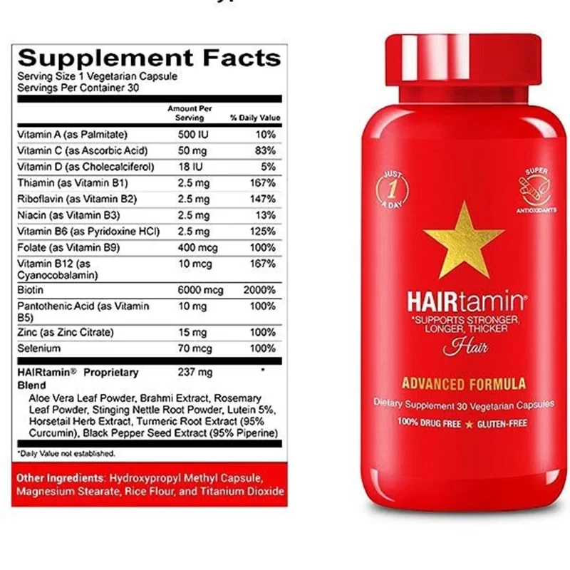 قرص تقویت مو هیرتامین یک مکمل مغذی قوی برای مو است. فرمولاسیون این محصول به شما کمک می کند تا موهایی سالم تر، بلند تر و ضخیم تر داشته باشید. ترکیبی قدرتمند از ویتامین ها، مواد معدنی و گیاهان به همراه آنتی اکسیدان های قوی، رشد موهای فعلی را تقویت میکند و قدرت فولیکول ها را برای داشتن موهای زیبا و سالم، افزایش می دهد.